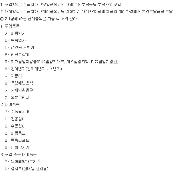 - 복지용구 지원서비스: 복지용구를 제공하거나 대여하는 서비스