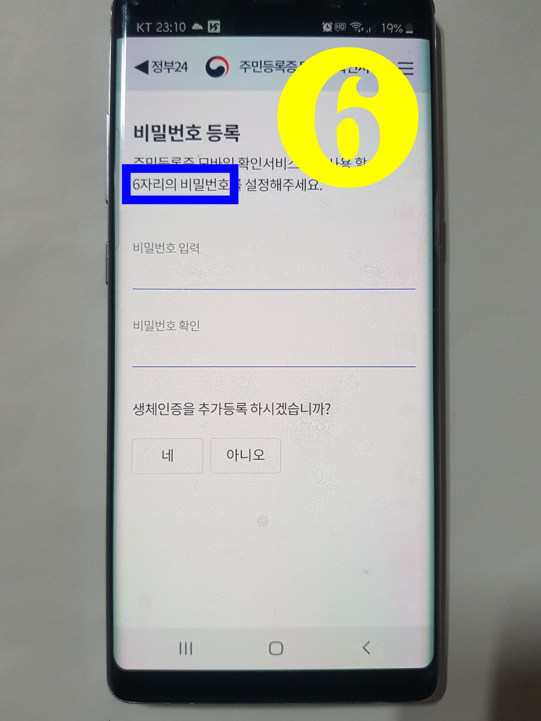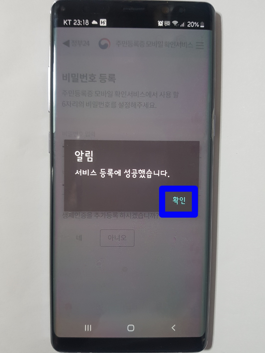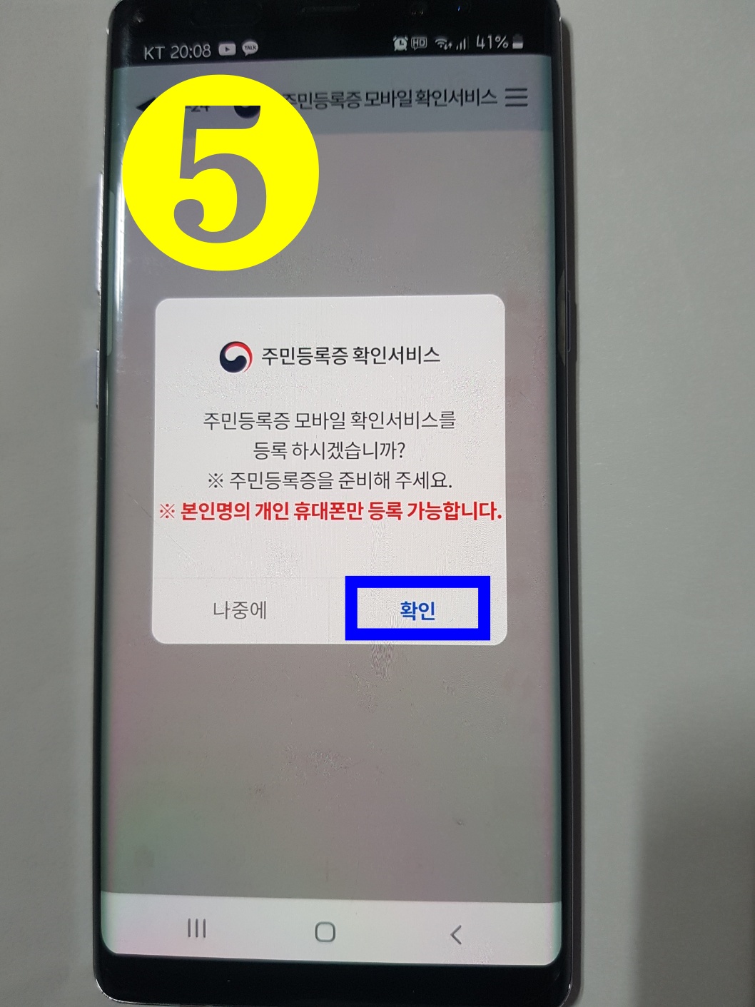 5. 등록하시겠습니까? 확인 클릭하고 주민등록증을 준비합니다.