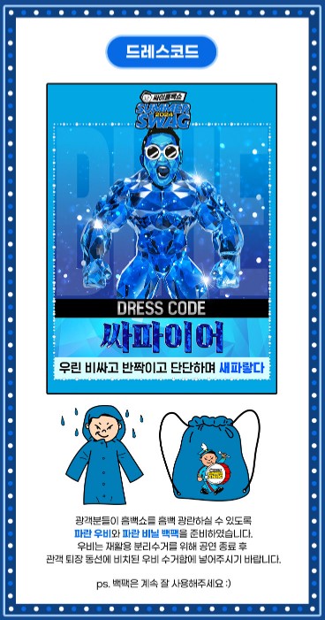 ■광객분들 준비물: 파란 우비와 파란 비닐 백팩