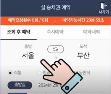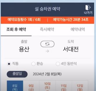 - 예약요청 횟수는 6회로 제한하며 3분이 경과한 후에는 재접속해야 합니다.
