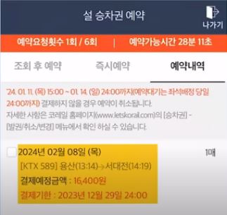 - 명절승차권은 KTX 마일리지, 일반열차 할인쿠폰 적립 대상에서 제외됩니다.