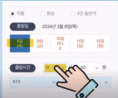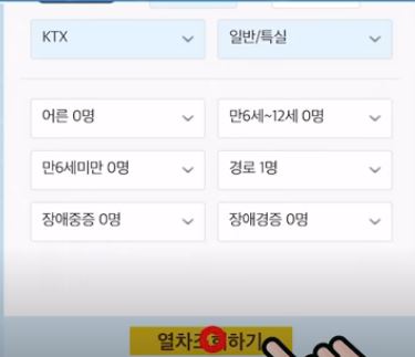 6. 기차 종류와 일반/특실, 인원수를 선택합니다.