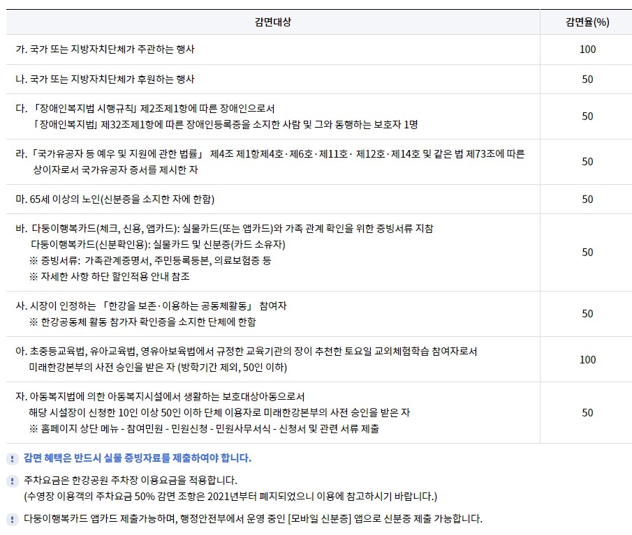 - 시설 이용 후에는 할인 적용에 따른 이용료 환불 불가.